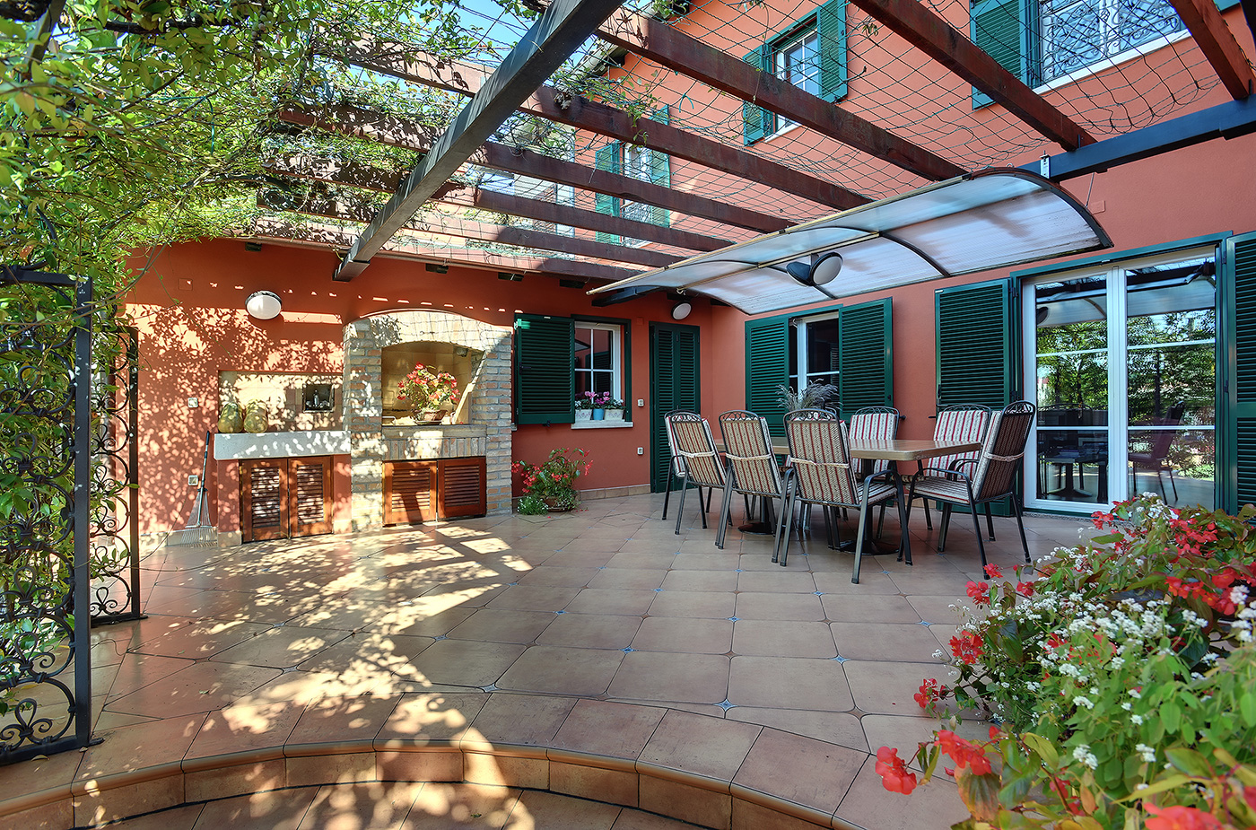 Cozy and comfortable interior blends in perfectly with the private garden, big terrace with barbecue facilities and swiming pool.